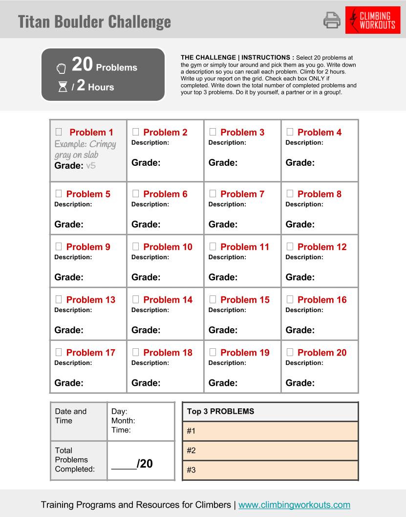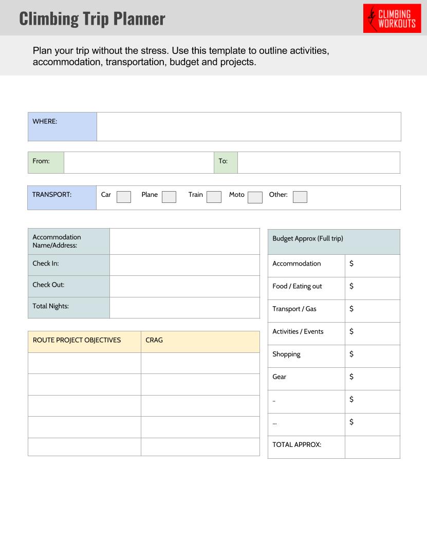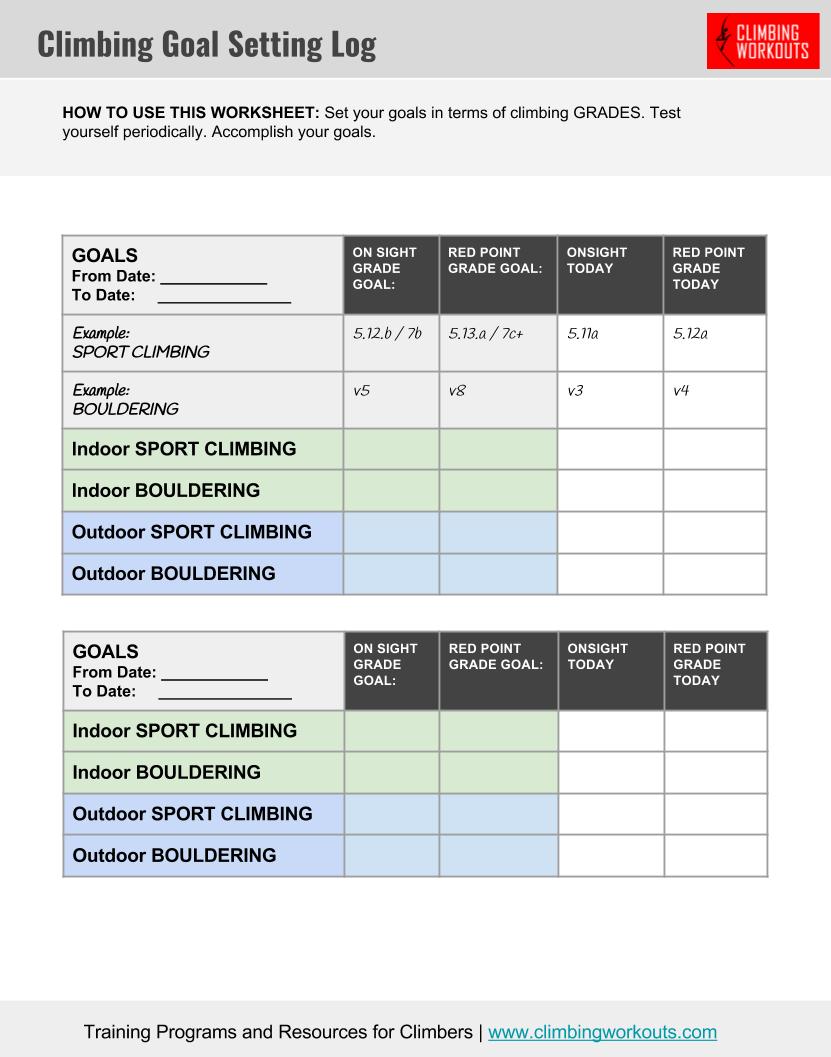 INSTANT DOWNLOAD. Print out, fill in, stay organized and motivated with your climbing improvement.