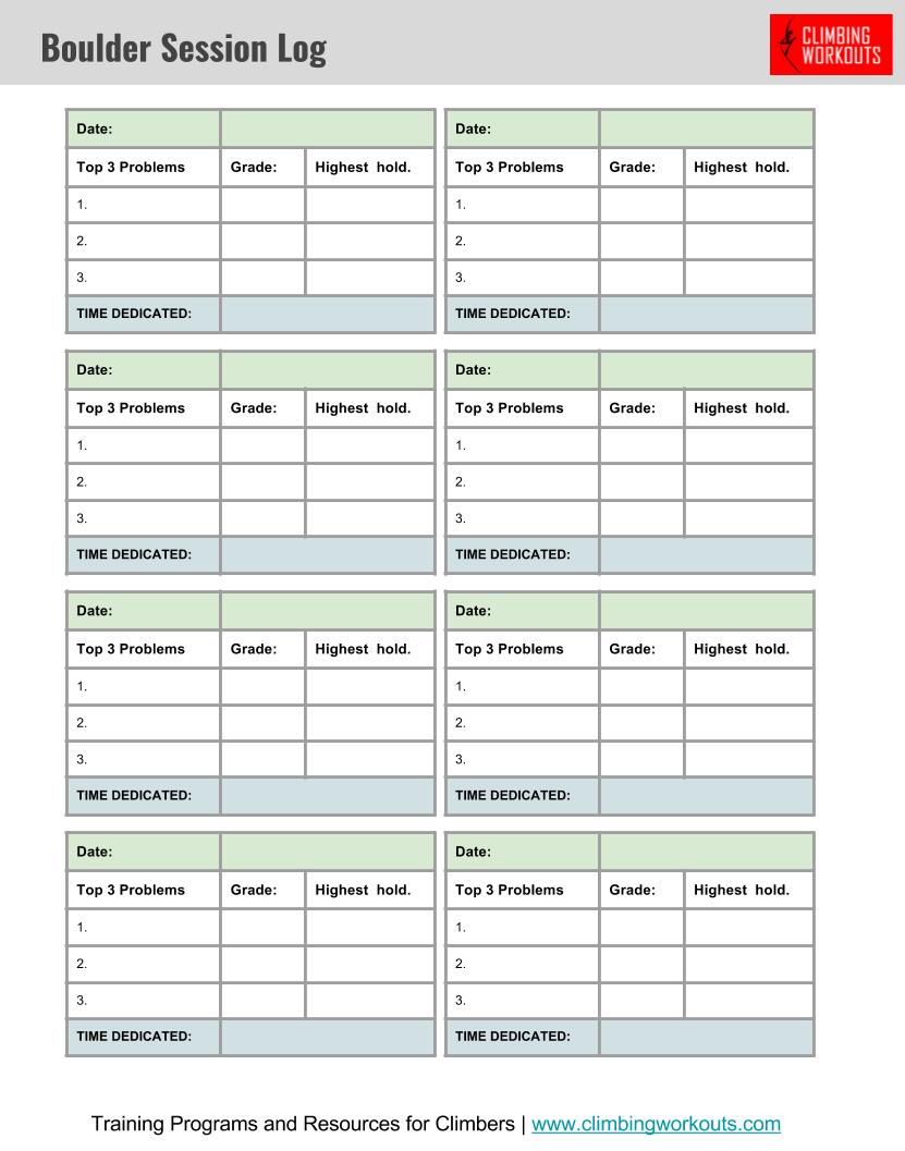 Log your bouldering sessions so you know how, when and how many times it takes you to complete specific problems.