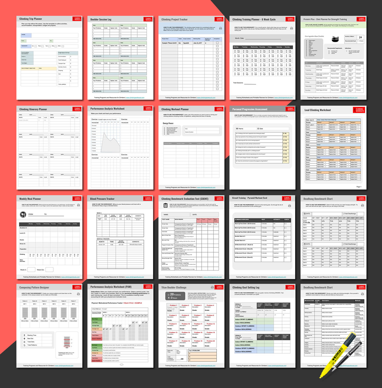 I watched climbing videos and spent $300 in climbing courses at my local gym. I learned a lot, but the training printables were without a doubt, the most effective co-pilot for my training. The things I like most about the worksheets was the very thorough and clear format along with the ease to follow up.